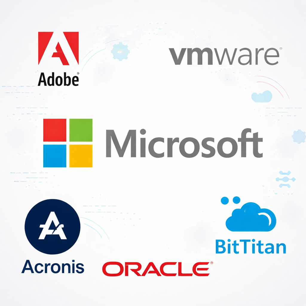 Wij werken met oplossingen van Microsoft, met name Microsoft 365. Hiermee voorzien we jouw organisatie van moderne werkplekken, samenwerkingstools en cloudopslag — veilig, flexibel en altijd beschikbaar. Wij leveren daarnaast ook vele andere licenties van oa. Rapid7, Adobe, vmware, Acronis, Oracle, BitTitan en nog veel meer.