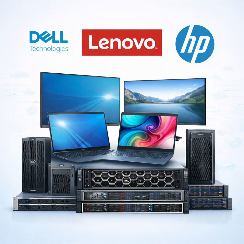 Wij leveren hoogwaardige hardware van gerenommeerde fabrikanten Dell Technologies, Lenovo en HP Inc. Krachtige laptops, betrouwbare pc’s, scherpe monitoren en alle benodigde randapparatuur om jouw medewerkers optimaal te laten werken — op kantoor én op afstand. Daarnaast bieden wij enterprise-oplossingen van Dell Technologies, waaronder servers, storage en back-upomgevingen.